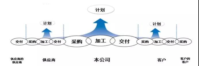 供应链管理( SCM-supply chain management)是一个链条的概念,突出的是这个“chain”,从客户到供应商之间的协同,甚至是从客户的客户,到供应商的供应商之间的协同,即所谓端到端的协同。
