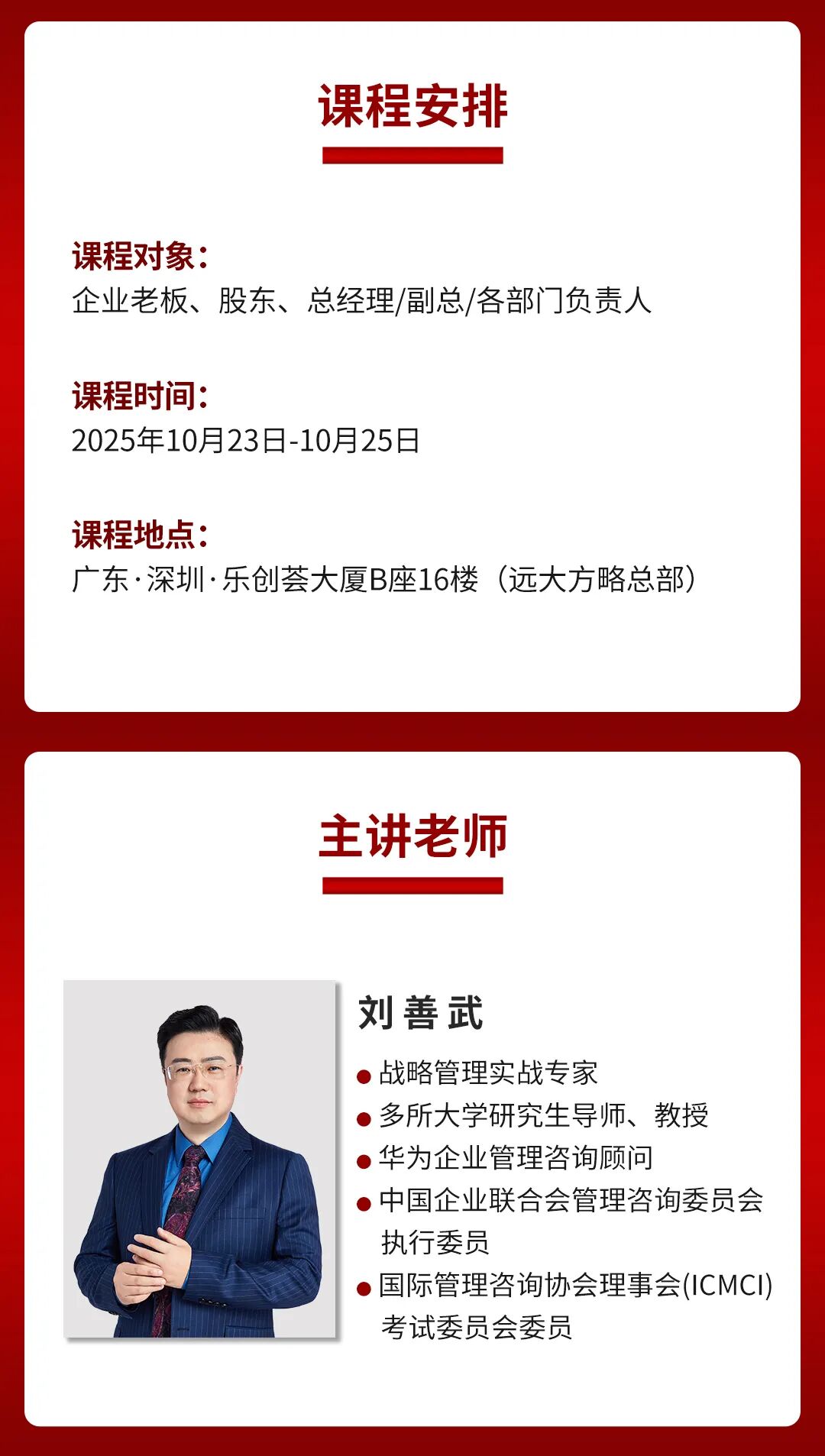 报名通道已开启!10月23日-25日《2026从战略到执行》高能训战班