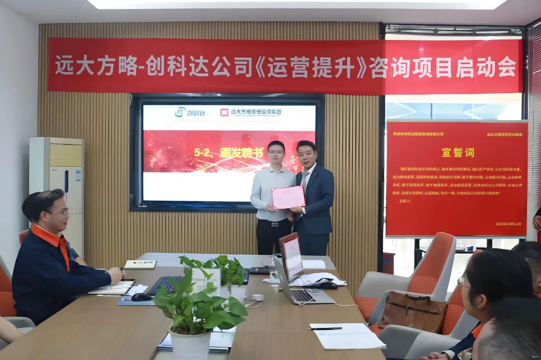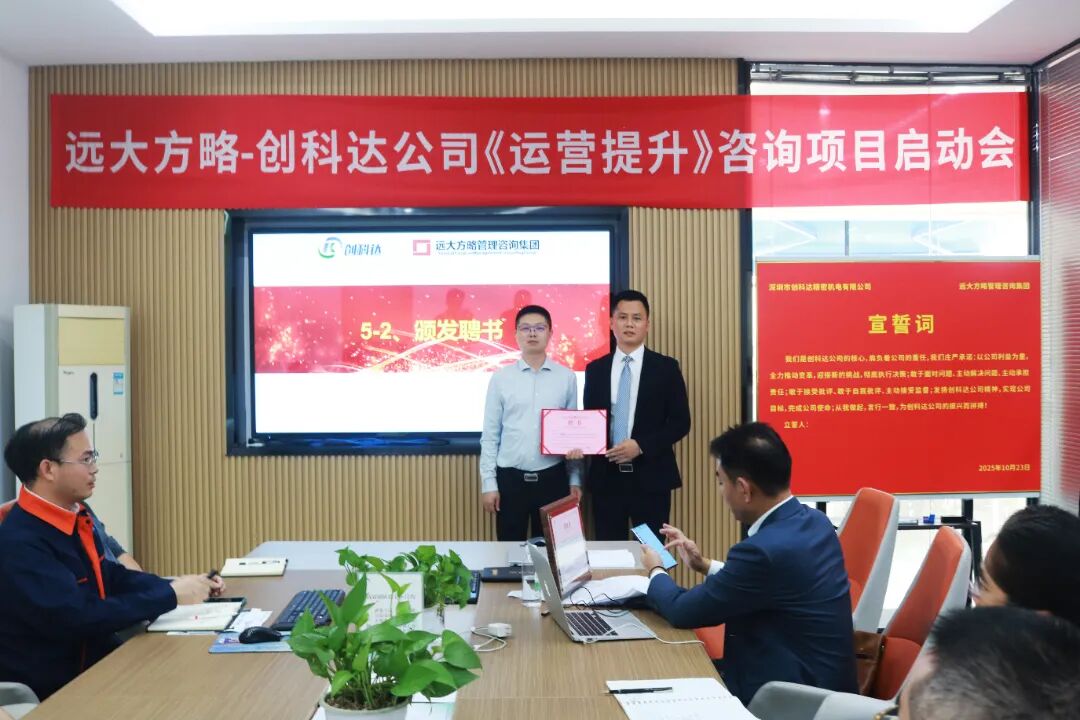 近日,深圳市创科达精密机电有限公司(以下简称“创科达”)携手远大方略启动《卓越运营》咨询项目,进行科学、系统的管理升级,优化供应链管理,减少库存积压,提升资金周转率;现场 5S 管理营造干净整洁的环境,提高效率与质量,降低事故率;完善组织架构,提升团队管理效率,合理配置资源,提高决策准确性。全方位提升运营管理水平,为企业高质量发展注入强劲动力。